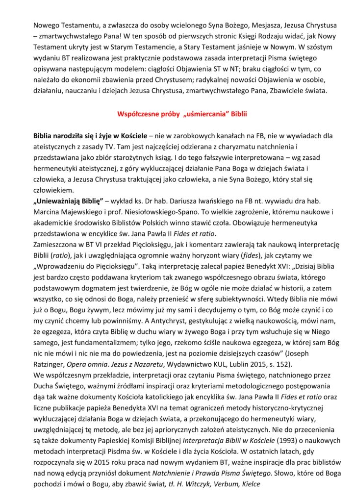 Poniżej także treść referatu wygłoszonego przez prezesa zarządu Fundacji DABAR na konferencji naukowej pt. „Biblia w języku polskim w XX i XXI wieku”, 9-10 grudnia, w Papieskim Wydziale Teologicznym we Wrocławiu.