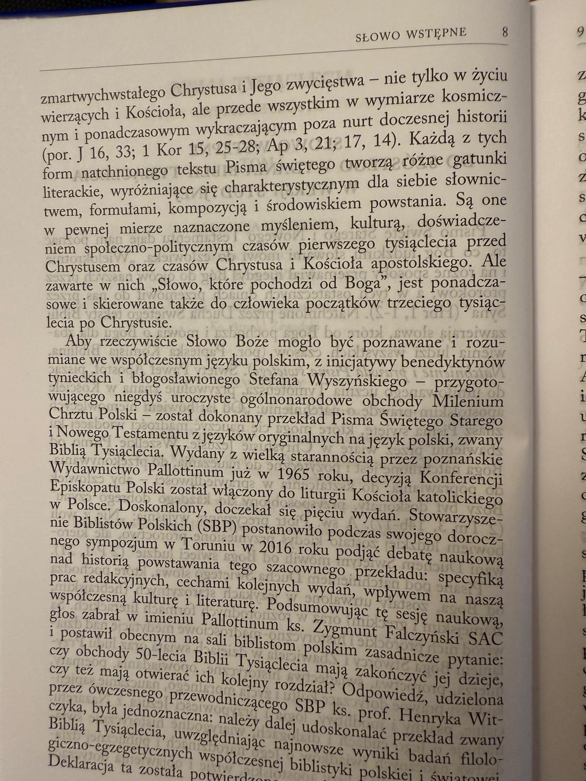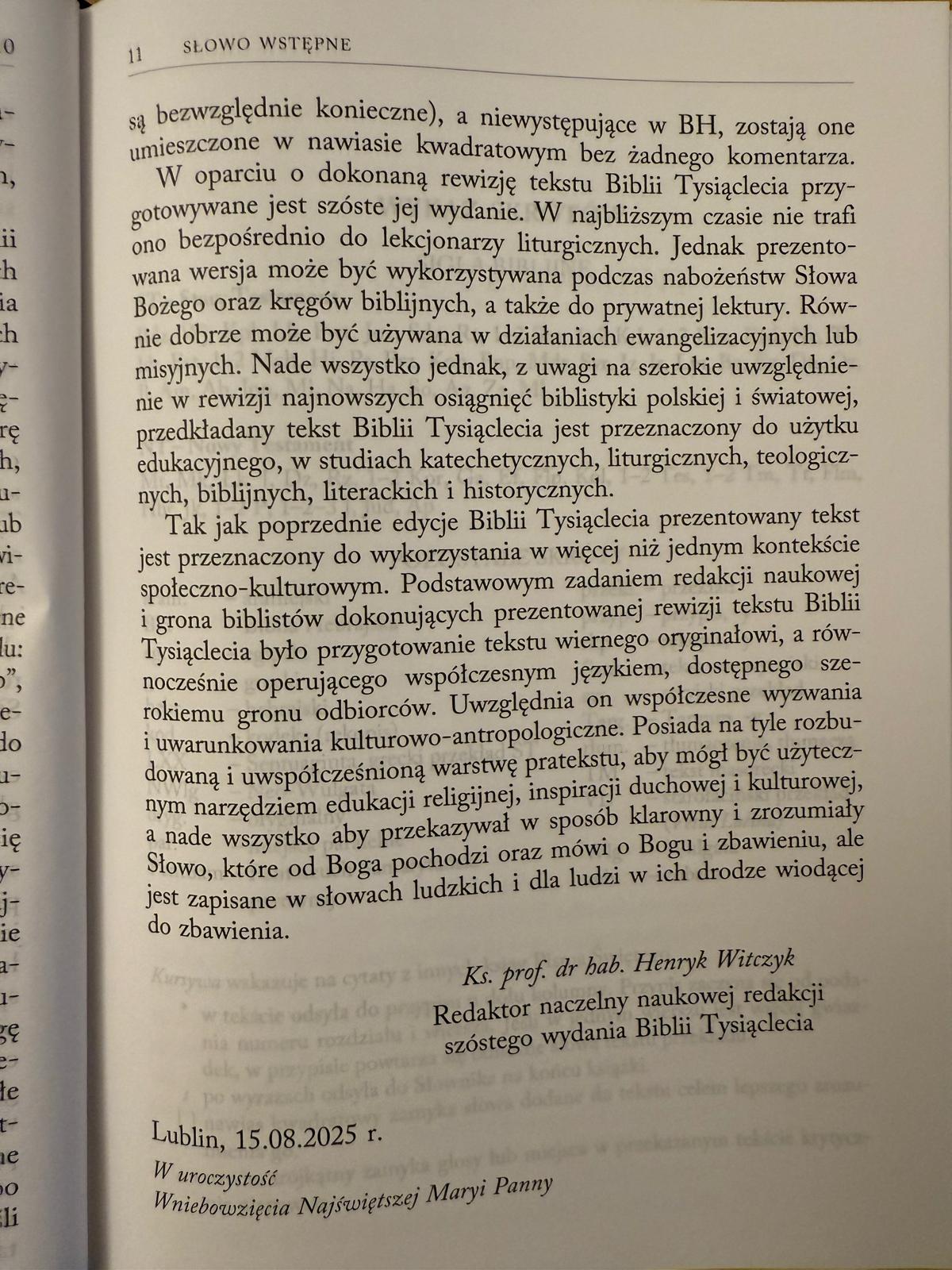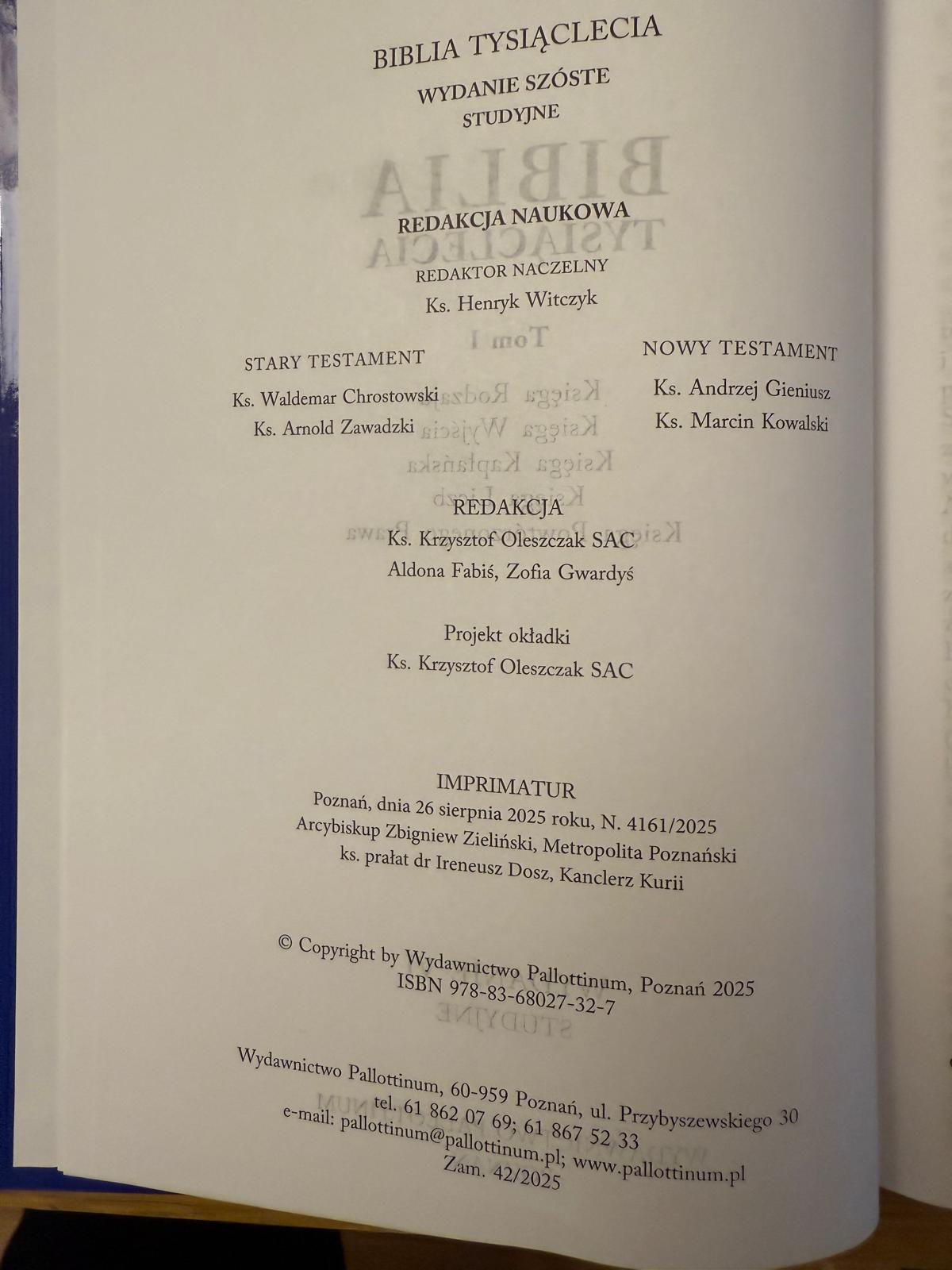 Pierwszy, studyjny tom ukazuje się w Święto Niepokalanego Poczęcia Najświętszej Maryi Panny – Królowej Polski, której najnowsze dzieje Narodu zawierzył w Ślubach Jasnogórskich bł. Prymas Stefan kard. Wyszyński – promotor pierwszego, milenijnego wydania Biblii Tysiąclecia.